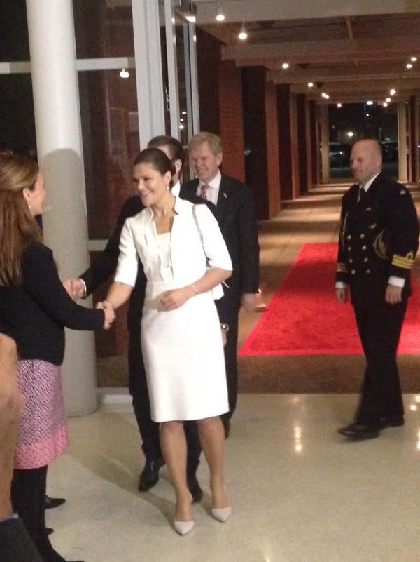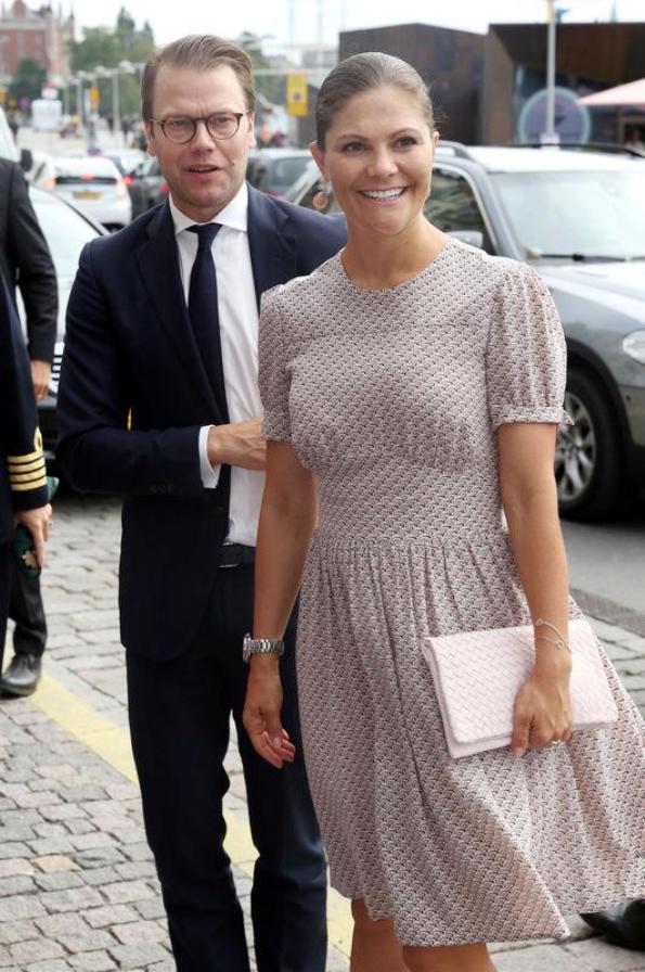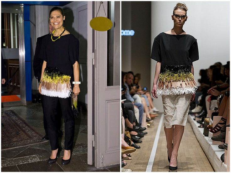 Кронпринцесса Виктория в этих ее вечных квадратных пальто, костюмах, в платьях-балахонах, платьях, которые делают из нее бодибилдершу плечевого пояса и ягодиц. Ботильоны, которые ее крепенькие ноги урезают до лошади-тяжеловоза, брюки 7/8 с пузырями на коленках....опять же блестючие колготки.